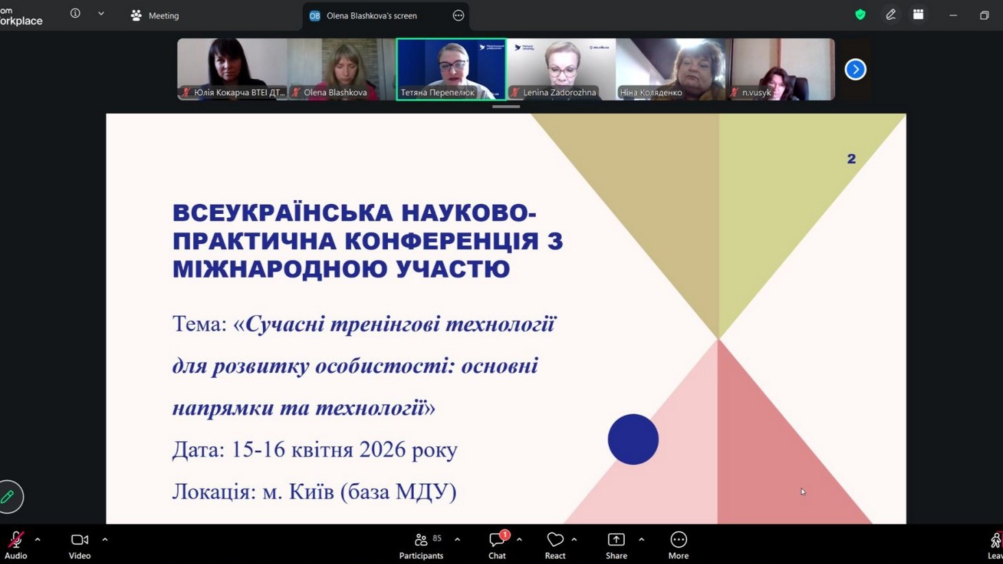 15 – 16 квітня 2026 року викладачі кафедри психології взяли активну участь у роботі Всеукраїнської науково-практичної конференції з міжнародною участю «Сучасні тренінгові технології для розвитку особистості: основні напрямки та технології». Захід, організований Маріупольським державним університетом (м. Київ), став потужним майданчиком для обговорення інноваційних методів психологічної допомоги та розвитку особистості в умовах сучасних викликів.