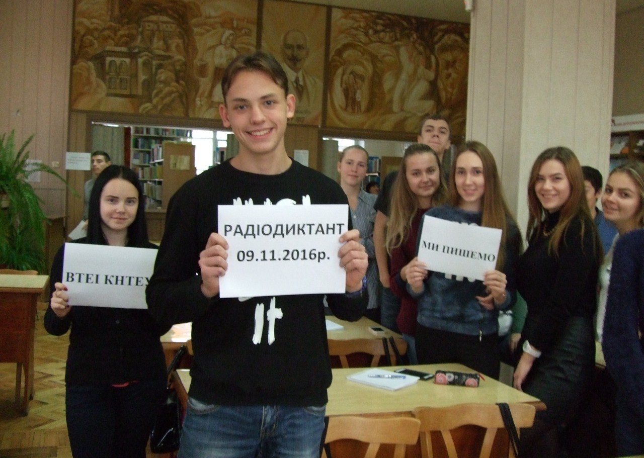 Сьогодні у День української писемності та мови Вінницький торговельно-економічний інститут КНТЕУ долучився до написання Всеукраїнського диктанту національної єдності, який був зачитаний у прямому ефірі Українського радіо. Особливо активними були студенти факультету торгівлі, маркетингу та сфери обслуговування, груп ХТІ -11 та ГРС -11 на чолі із заступником декана І. О. Мазуркевич, які разом із працівниками бібліотеки інституту перевірили свої знання української мови, і головне, продемонстрували солідарність з усіма, хто любить і шанує рідне слово, хто хоче, щоб українці спілкувалися українською мовою і зберегли її для нащадків.