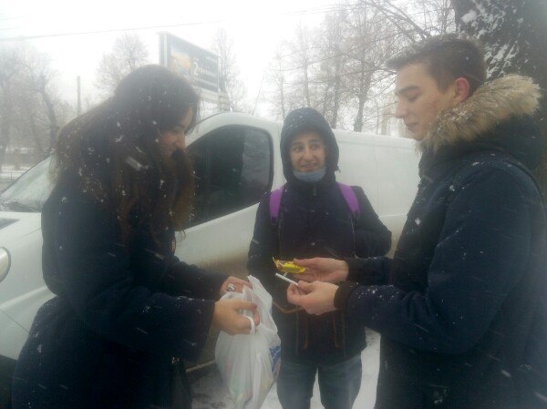 У ході акції поблизу навчального корпусу №4 було проведено обмін цигарок на цукерки та проведено бесіду зі студентами і перехожими про шкідливість тютюнопаління та відповідальне ставлення до власного здоров’я.