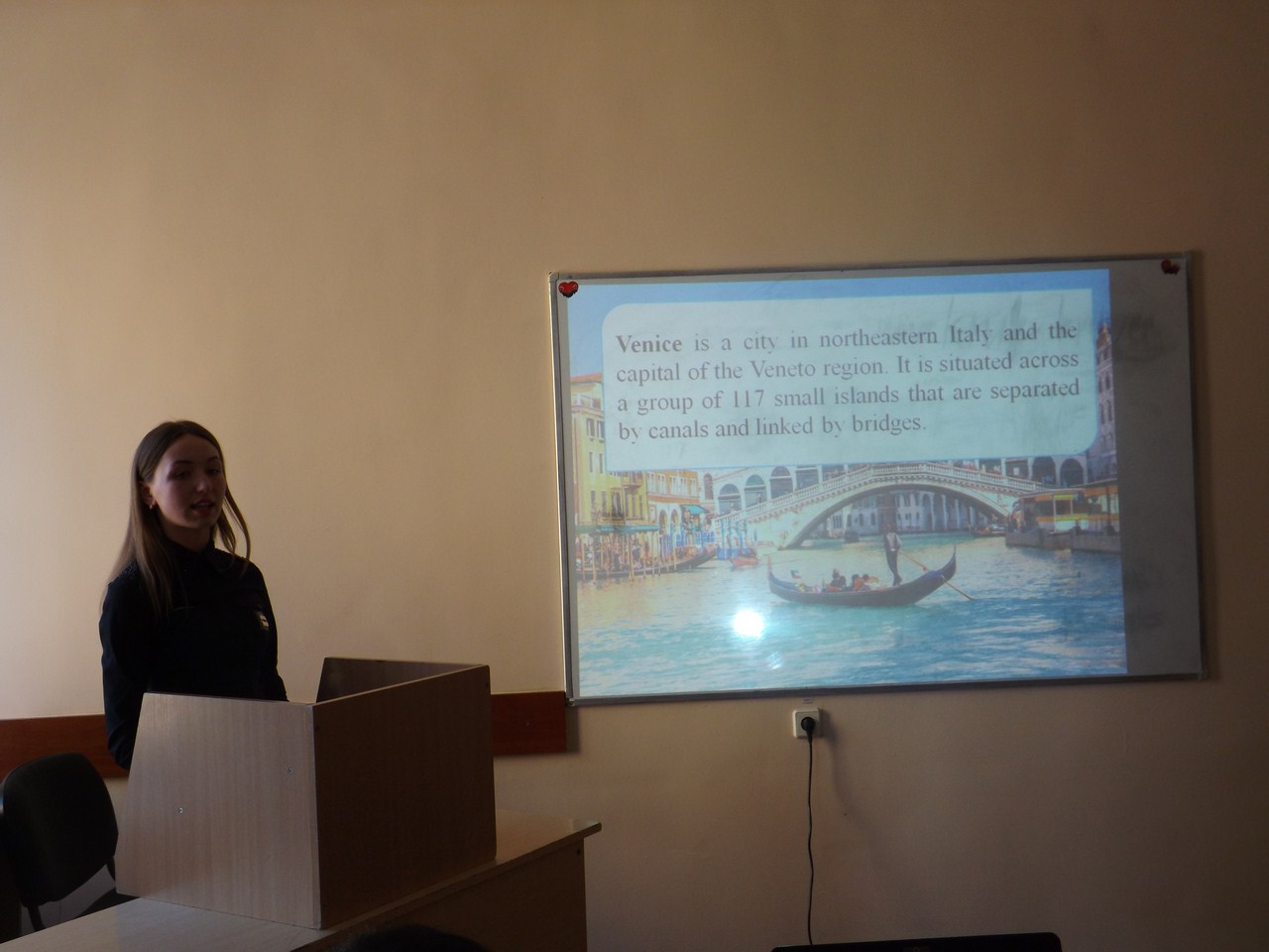 27 лютого 2017 року на кафедрі іноземної філології та перекладу відбулося відкрите засідання студентського наукового гуртка «American and English Studies» (керівники: ст. викл. Мацера О.А., ас. Паславська І.Б.) на тему «The most incredible places to visit». Здобувачі вищої освіти, які навчаються за різними спеціальностями, мали можливість поспілкуватися англійською мовою під час представлення підготовлених ними творчих презентацій про найцікавіші місця планети. У невимушеній атмосфері студенти дискутували про світові туристичні центри, переглянули низку відеоматеріалів та виконали підготовлені керівниками гуртка креативні тестові завдання. Загалом навчально-наукова діяльність студентів була спрямована на формування їхньої іншомовної професійної компетентності, поліпшення соціокультурної та лінгвокультурної вправності. Учасники гуртка взяли активну участь у виборі найкращої доповіді-презентації, якою стала робота Яремко Анастасії (МО-31) про Венецію. Засідання гуртка закінчилося традиційним для англійців чаюванням.