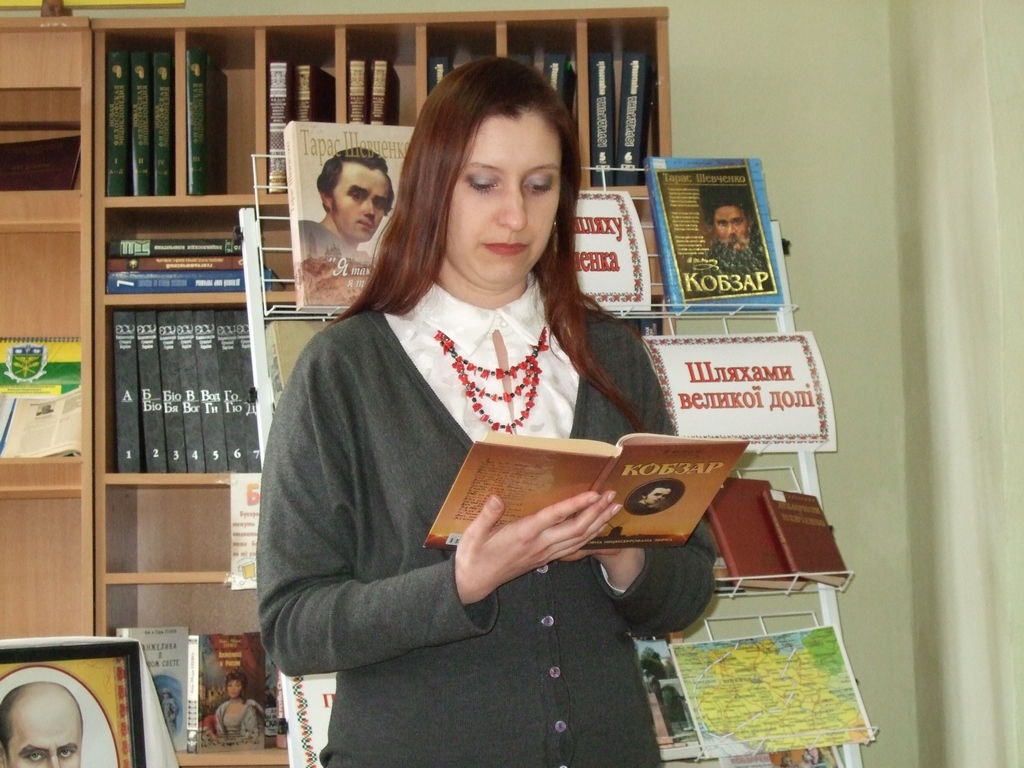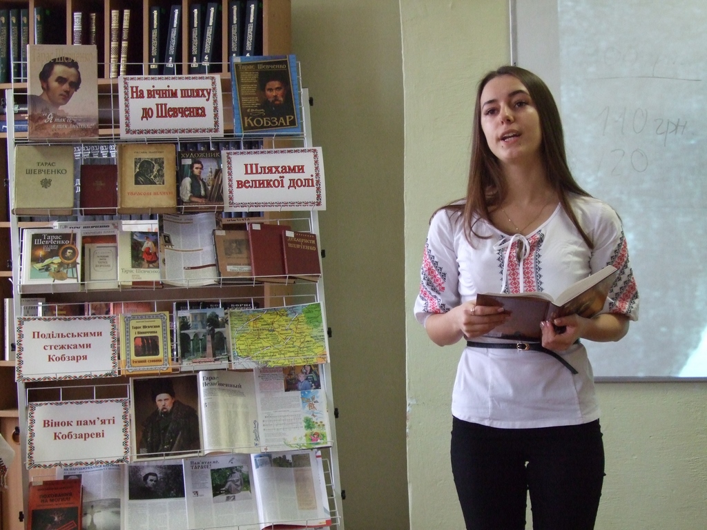 Кожне нове покоління відкриває для себе Т. Шевченка знову і знову, а «Кобзар» став настільною книгою для багатьох поколінь. Працівниками бібліотеки підготовлено книжкову виставку «На вічнім шляху до Шевченка», з матеріалами якої ознайомила присутніх бібліотекар І категорії Ольга Вовк. Тон дійству задали заступник декана з навчально-виховної роботи обліково-фінансового факультету Копняк Катерина Валентинівна та завідувач бібліотеки Яворська Тетяна Михайлівна прочитавши твори поета.