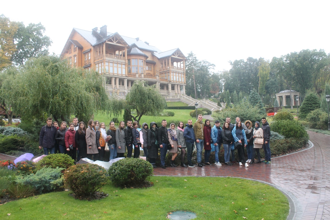 Екскурсія почалася із відвідання колишньої приватної резиденції Президента – Межигір`я. Студенти отримали враження від ландшафтного дизайну парка, президентського дому «Хонка», джерела «Дзвінкова криниця», адміністративного комплексу, зоопарку.