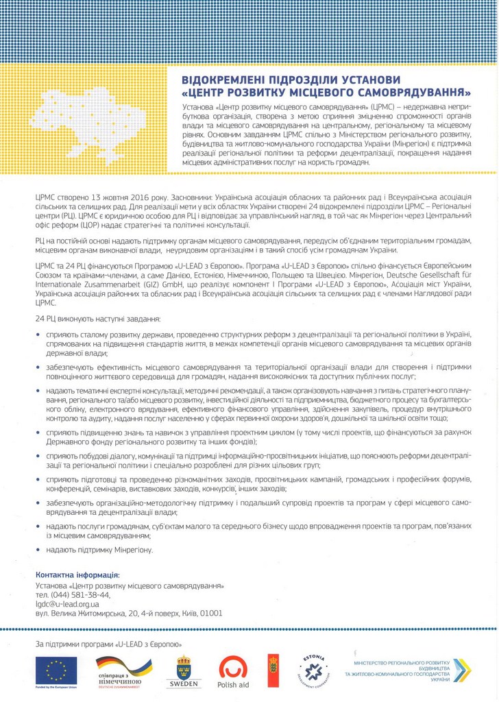 25 жовтня 2017 року відбулася зустріч активу студентства з директором Вінницького відокремленого підрозділу Установи «Центр розвитку місцевого самоврядування» Олегом Левченко. Представники Центру запропонували студентам співпрацю в рамках реалізації Програми «U-LEAD з Європою: Програми для України з розширення прав і можливостей на місцевому рівні, підзвітності та розвитку». Програма впроваджується з метою реалізації регіональної політики та реформи децентралізації. В кінці зустрічі директор центру відповів на багаточисельні питання студентів, яких зацікавила участь у реалізації даної програми.
