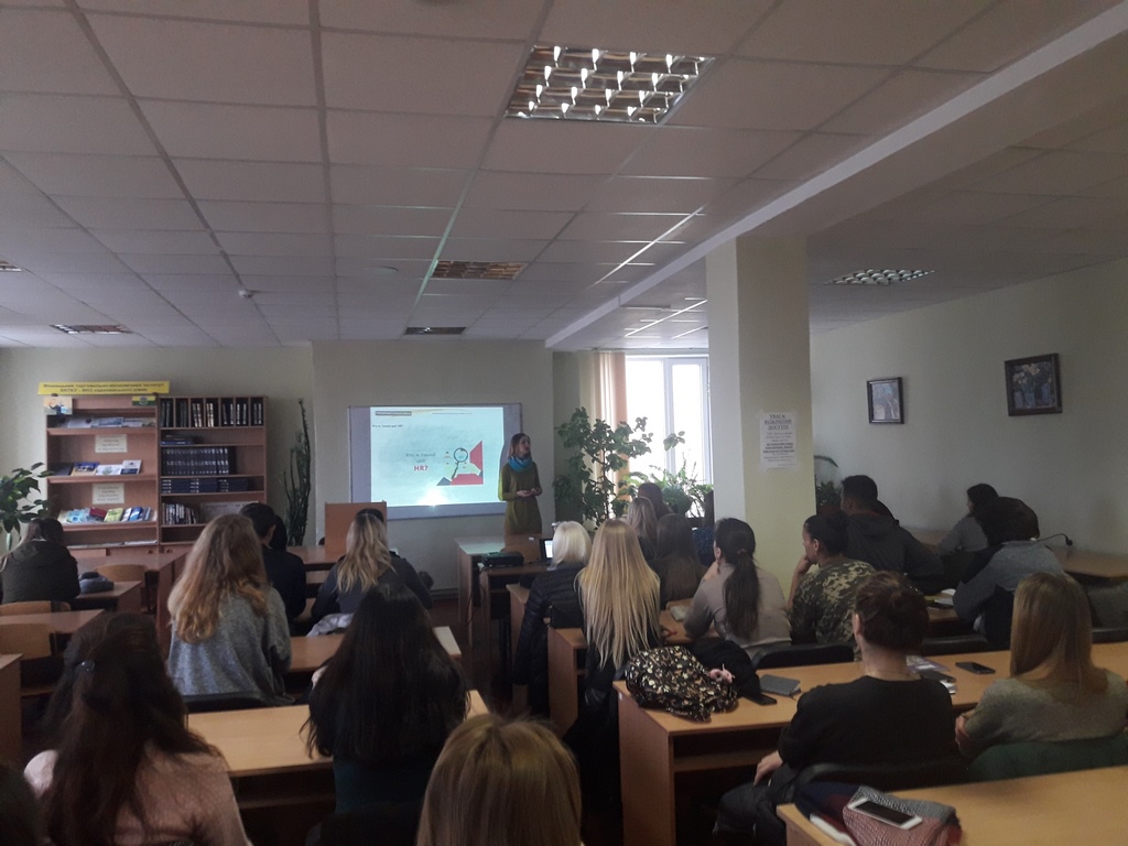 08 листопада 2017 року в рамках святкування тижня факультету економіки, менеджменту та права кафедрою менеджменту та адміністрування було організовано зустріч із директором з персоналу ТОВ «ПромАвтоматика» Катериною Штопко.