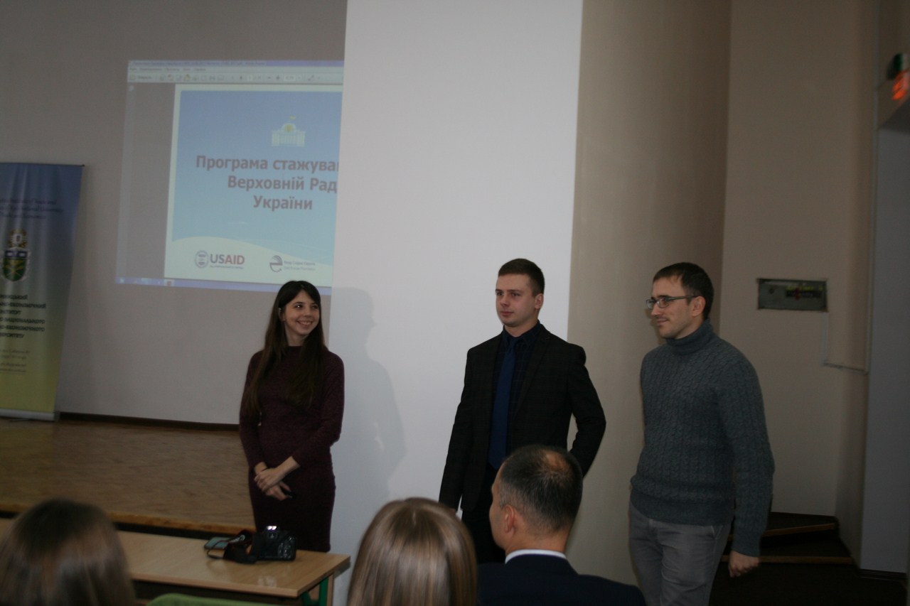 Під час презентації представники ГО «Ліга інтернів» Мар’яна Добоні та Володимир Левицький ознайомили присутніх з умовами конкурсного відбору, вимогами до конкурсантів, розповіли про компоненти Програми. Програма стажування у Верховній Раді України існує з 1995 року. За цей час її учасниками стало більше 1680 осіб, серед яких чотири народні депутати України різних скликань.
