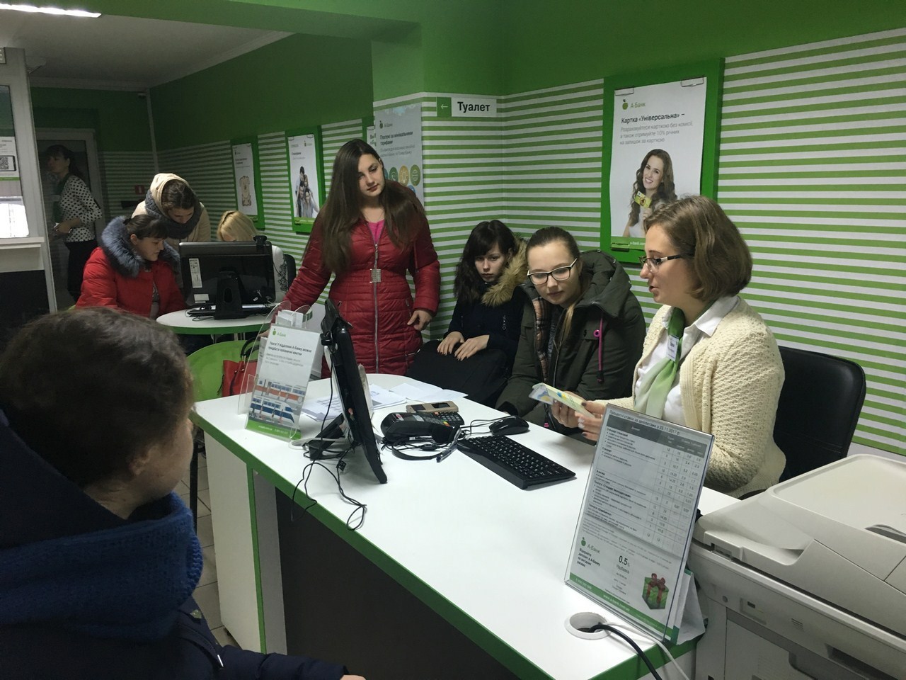 30 листопада 2017 року кафедрою фінансів було організовано екскурсію для здобувачів 1 курсу спеціальності «Фінанси, банківська справа та страхування» до відділення ПАТ «Акцент-банк». Банківськими співробітниками для студентів було проведено майстер-клас на тему: «Процедура еквайрингу та її реалізація». Майстер клас розпочався із міні-лекції про особливості банківської діяльності, структуру банківської системи України та її роль в економіці. Спеціалісти розповіли студентами про банківське шахрайство, картки з чіпами; показали, як вони перевіряють грошові банкноти і працюють в системі електронних платежів. Здобувачі вищої освіти із захопленням спостерігали за діями банківських працівників і спробували себе в ролі кредитних спеціалістів.