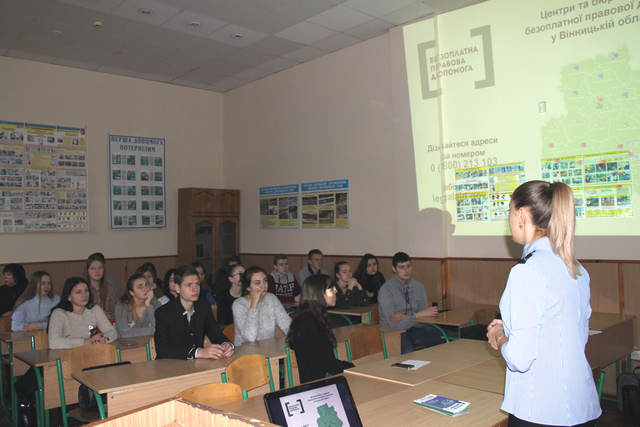 07 грудня 2017 року для студентів спеціальності «Право» групи КПР-11д було проведено майстер-клас фахівцями Регіонального центру з надання безоплатної вторинної правової допомоги у Вінницькій області (БВПД).
