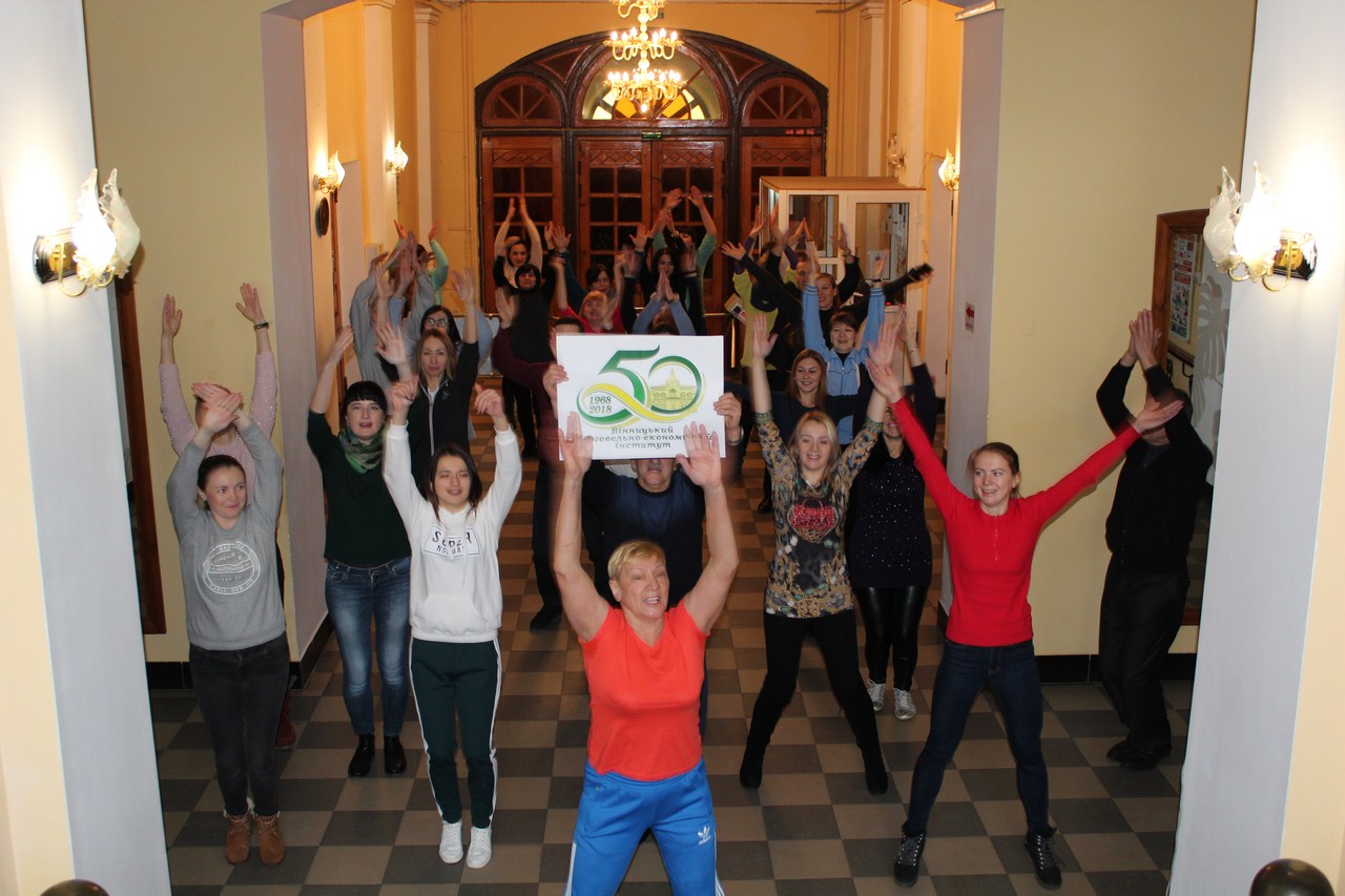 16 січня 2018 року в 1 корпусі відбувся флешмоб, присвячений святкуванню 50-річчя ВТЕІ КНТЕУ, організований викладачами кафедри філософії та економічної теорії за ініціативи викладачів фізичного виховання Вінницького державного педагогічного університету ім. М. Коцюбинського Краснобаєвої Т.М та Мірошніченка В.М., які проходять стажування на кафедрі.