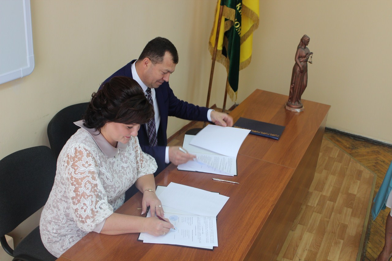 Директор Вінницького торговельно-економічного інституту КНТЕУ Наталія Леонідівна Замкова та Голова Вінницького міського суду Вінницької області Андрій Васильович Михайленко підписали Договір про співробітництво, згідно якого студенти Вінницького торговельно-економічного інституту КНТЕУ за спеціальністю «Право» здобуватимуть практичний досвід у Вінницькому міському суді Вінницької області. У рамках Договору про співробітництво, студенти за спеціальністю «Право» мають можливість глибше дізнатись про роботу суду, побачити порядок проведення судових засідань, проходити навчальну, виробничу та переддипломну практику з перспективою їх подальшого працевлаштування.
