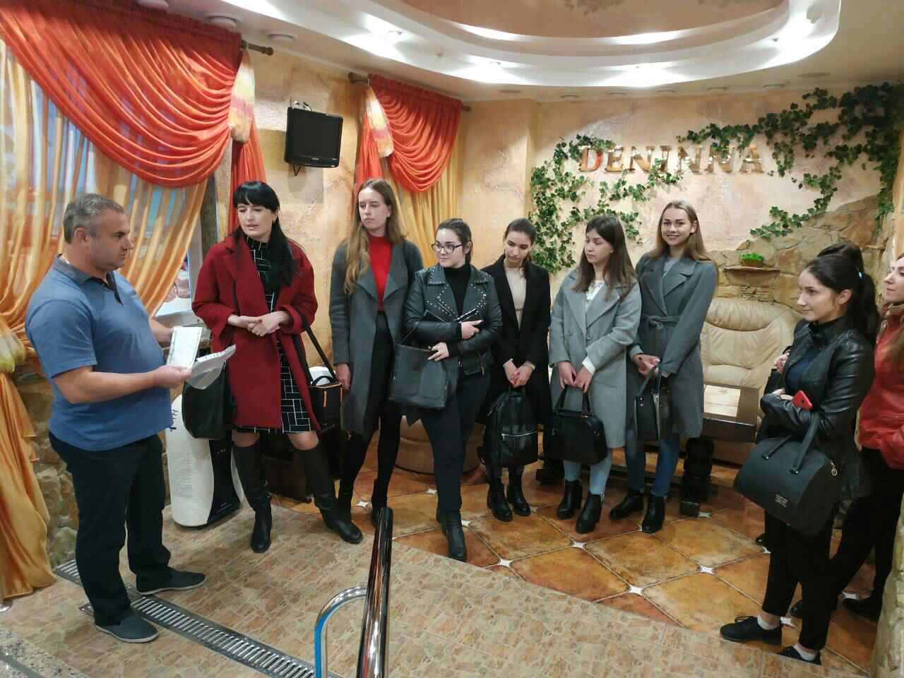 Захід розпочався з ознайомчої екскурсії по закладу, проведеної директором Дмитренком В.В. Присутні мали можливість ознайомитися з широким спектром процедур, які надаються СПА-комплексом, особливостями діяльності підприємства, дізнатися про новітні вітчизняні та зарубіжні тенденції розвитку подібних підприємств сфери гостинності, особливості формування споживчого попиту на СПА-процедури в Україні та закордоном. Цікаво було дізнатися не лише про ті оздоровчі процедури, які вже традиційно надаються закладом, але й ті, які є новими і лише впроваджуються.