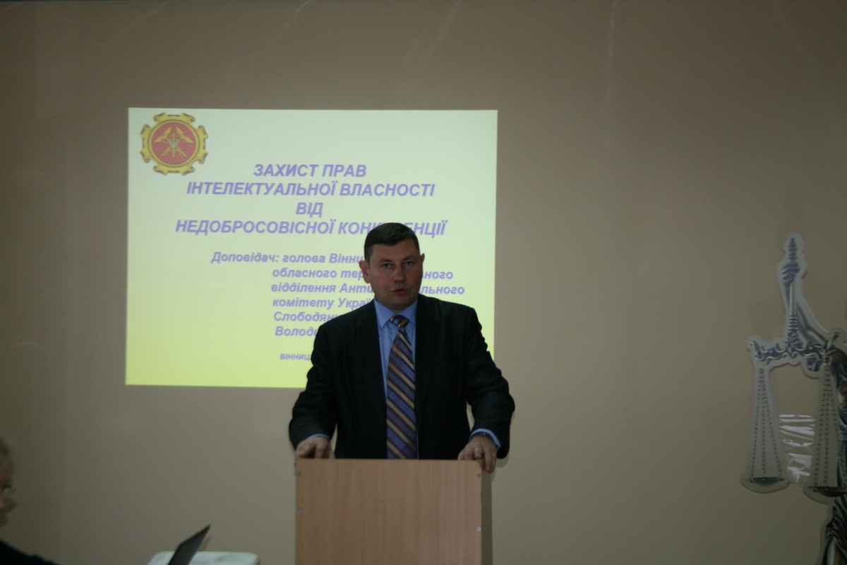 14 листопада 2018 року викладачами кафедри права факультету економіки, менеджменту та права був проведений міжвузівський круглий стіл на тему: «Правові проблеми захисту інтелектуальної власності». У роботі брали участь: Слободянюк Микола Володимирович – Голова Вінницького обласного територіального відділення Антимонопольного комітету України; Шевченко Ігор Анатолійович – начальник відділу зовнішньоекономічних зв’язків і перекладів Вінницької торгово-промислової палати, патентний повірений України; Маковій Олександр В'ячеславович – начальник сектору захисту прав інтелектуальної власності товарів військового призначення та подвійного використання Вінницької митниці ДФС; Думбровський Валерій Анатолійович – юрист, головний спеціаліст Регіонального центру з надання безоплатної вторинної правової допомоги у Вінницькій області; викладачі кафедри права, студенти та представники інших ВНЗ м. Вінниці.