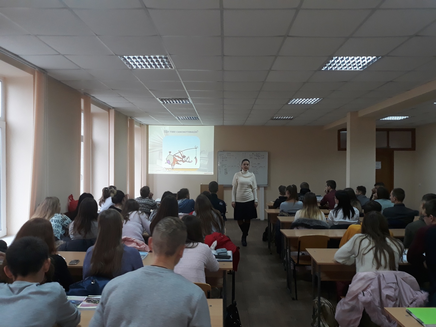Представник всеукраїнської організації «Платформа «Мудрість Учителя» Тетяна Трушевська, менеджер проекту, психолог, арт-терапевт, тренер ресурсних станів та коуч, провела цей семінар-тренінг з ціллю розкриття внутрішньої спонукальної сили студентів до навчання і становлення їх на професійному поприщі. На семінарі-тренінгу студенти могли навчитися планувати своє навчання та розвиток професійних здібностей; отримати нові знання щодо способів самомотивації; побачити перспективи для росту та розвитку себе як спеціалістів.