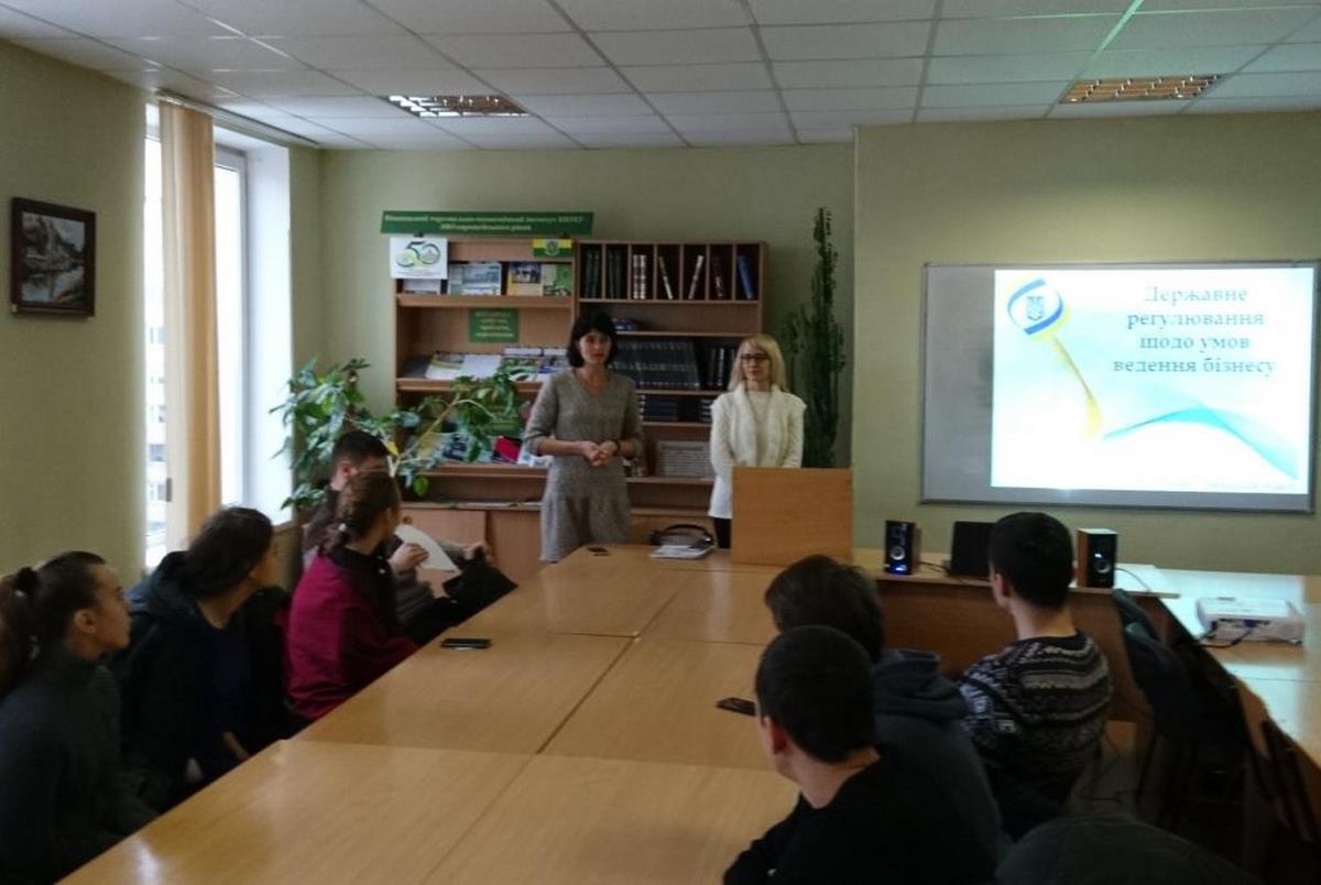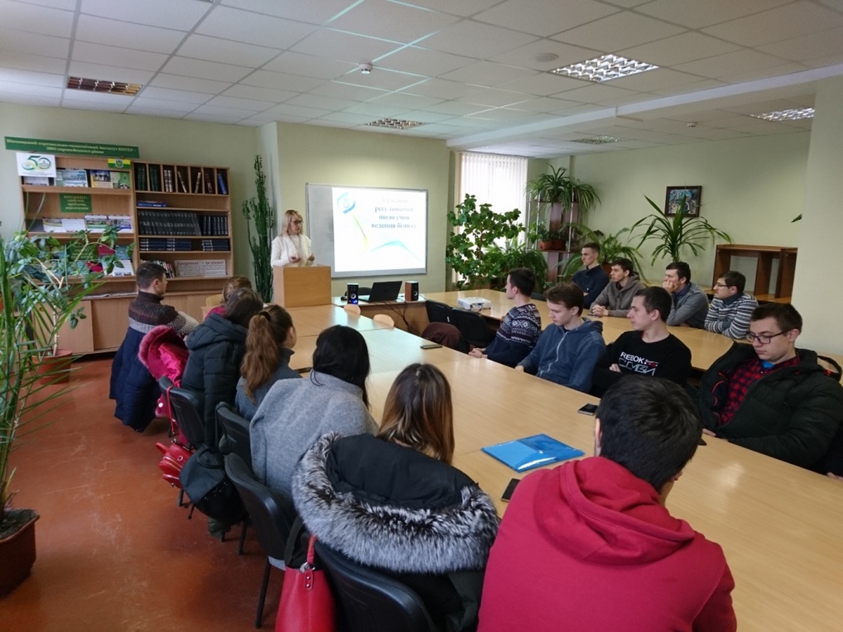 20 грудня 2018 року кафедрою економічної кібернетики та інформаційних систем ВТЕІ КНТЕУ було організовано лекцію на тему «Державне регулювання щодо умов ведення бізнесу», яку прочитала завідувач Сектору Державної регуляторної служби у Вінницькій області Данілова Олеся Вікторівна для здобувачів вищої освіти спеціальності «Економічна кібернетика».