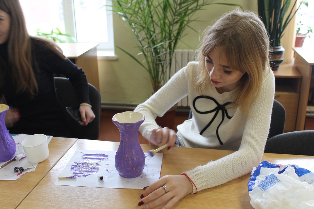 Студенти мали нагоду навчитися цій техніці і власноруч зробити оригінальну вазу, яку потім залишили собі на згадку.