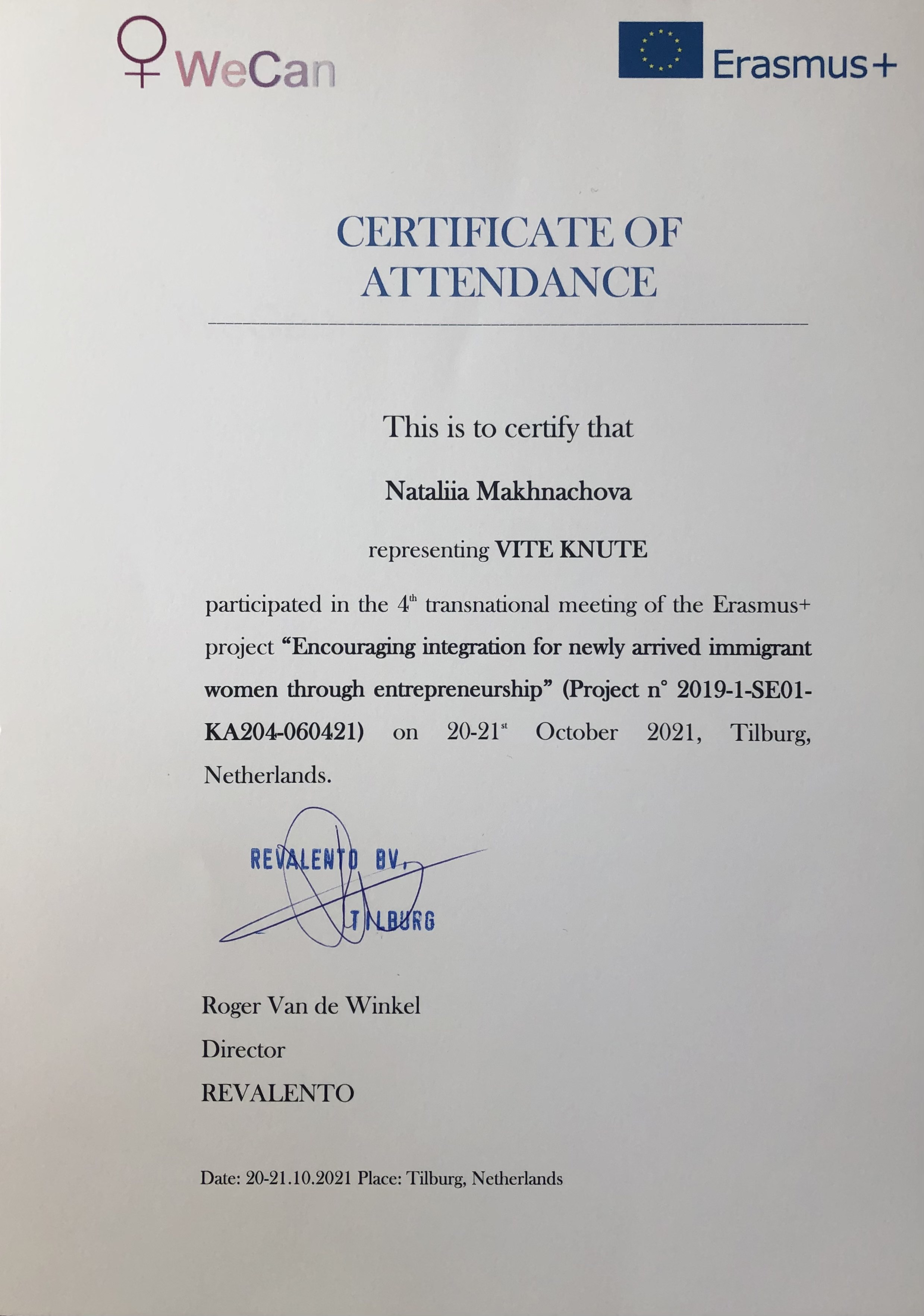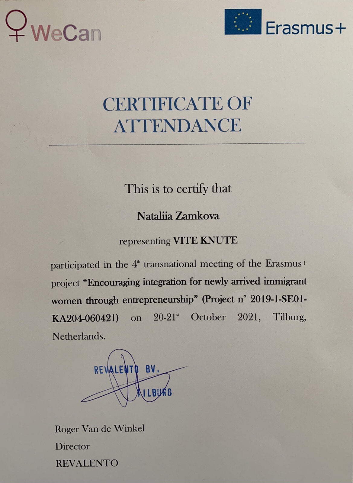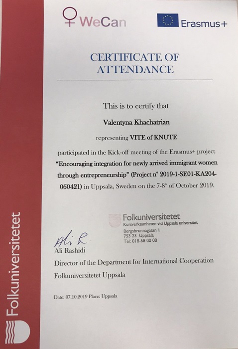 «ENCOURAGING INTEGRATION FOR NEWLY ARRIVED IMMIGRANT WOMEN THROUGH ENTREPRENEURSHIP» (WECAN) (ERASMUS +) PROJECT NUMBER 2019-1-SE01-KA204-060421.