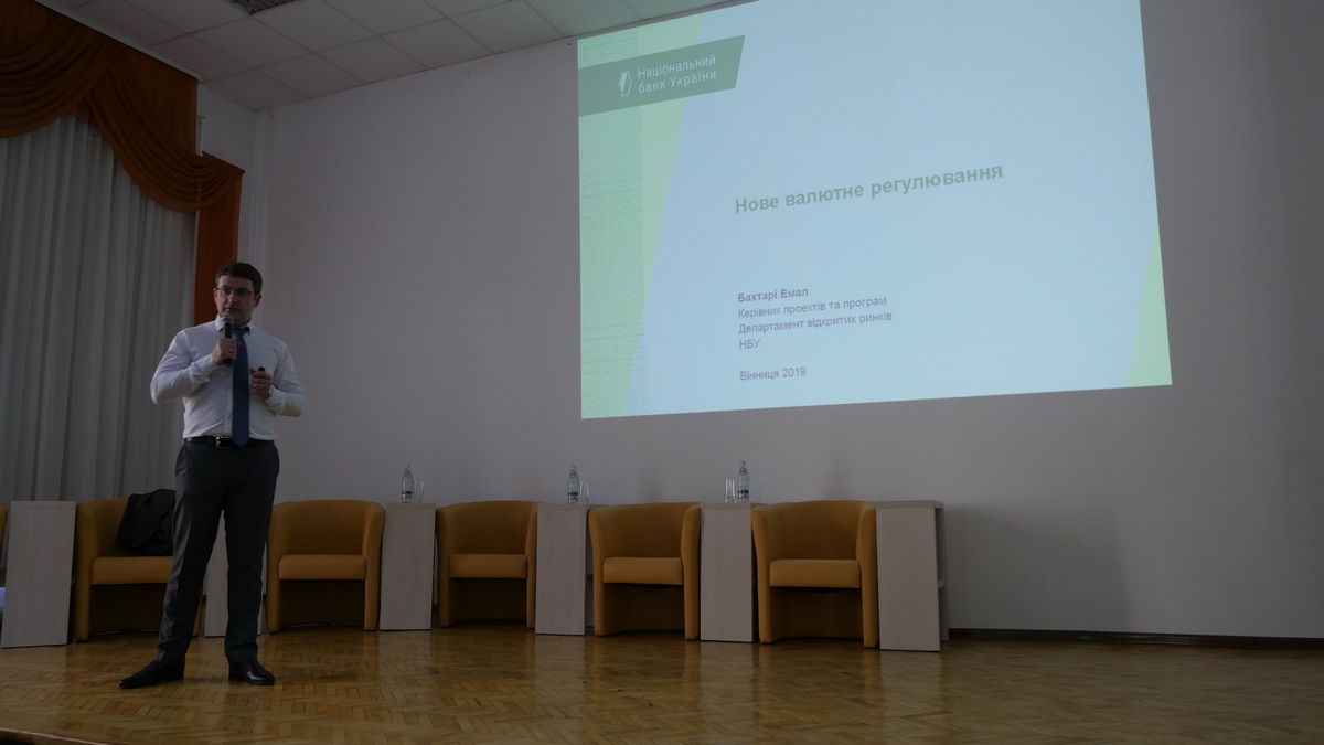 Керівник проектів та програм департаменту відкритих ринків Національного банку України Емал Бахтарі прочитав лекцію для викладачів та студентів ВТЕІ КНТЕУ на тему: « Як працює валютний ринок», під час якої цікаво та доступно ознайомив присутніх з особливостями функціонування міжбанківського валютного ринку України, антикризові валютні обмеження, лібералізацію валютного ринку та нове валютне регулювання відповідно до Закону України «Про валюту і валютні операції». По закінченню лекції бажаючі мали змогу задати питання по темі. Автору найоригінальнішого та найактуальнішого запитання пан Емал подарував науково-популярну книгу з економіки.