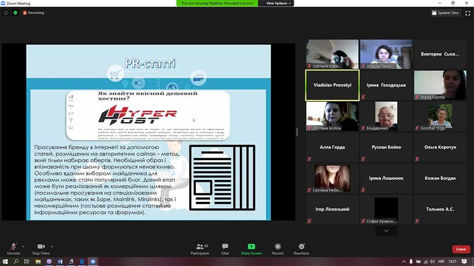 Здобувач освітнього ступеня "Магістр" ОП "Маркетинг"- Владислав Пневський мав можливість презентувати результати своєї наукової роботи "Формування стратегії просування бренду підприємства на високотехнологічному ринку", з якою на "Конкурсі наукових робіт з маркетингу - 2020" отримав диплом ІІІ ступеня.