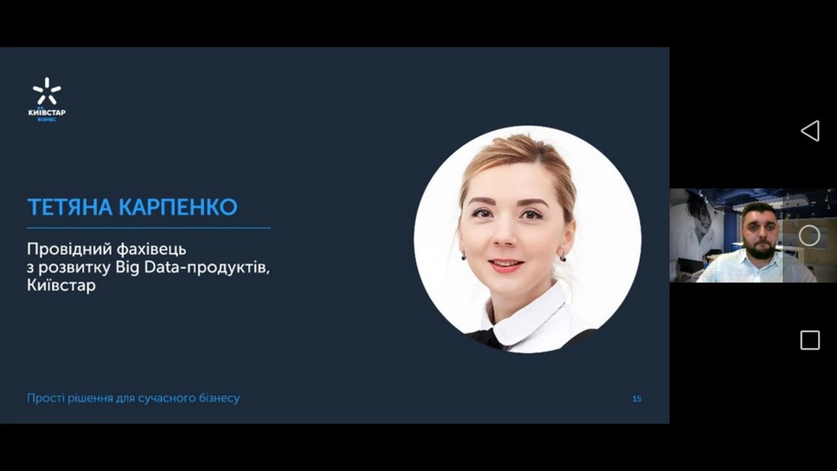 - Тетяна Карпенко, провідний фахівець розвитку Big Data продуктів, компанія Київстар.