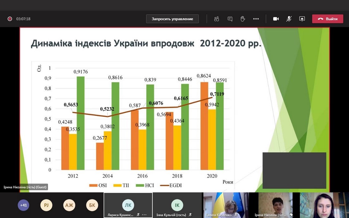 На пленарному засіданні виступила доцентка кафедри менеджменту та адміністрування Ніколіна І.І. з доповіддю «Оцінка цифровізації публічного управління та адміністрування», яка проаналізувала і візуалізувала результати оцінювання цифрових трансформацій в Україні на основі міжнародних індексів та висвітлила результати оцінювання стану цифровізації публічного управління та адміністрування на місцевому рівні на прикладі Вінницької міської об’єднаної територіальної громади.