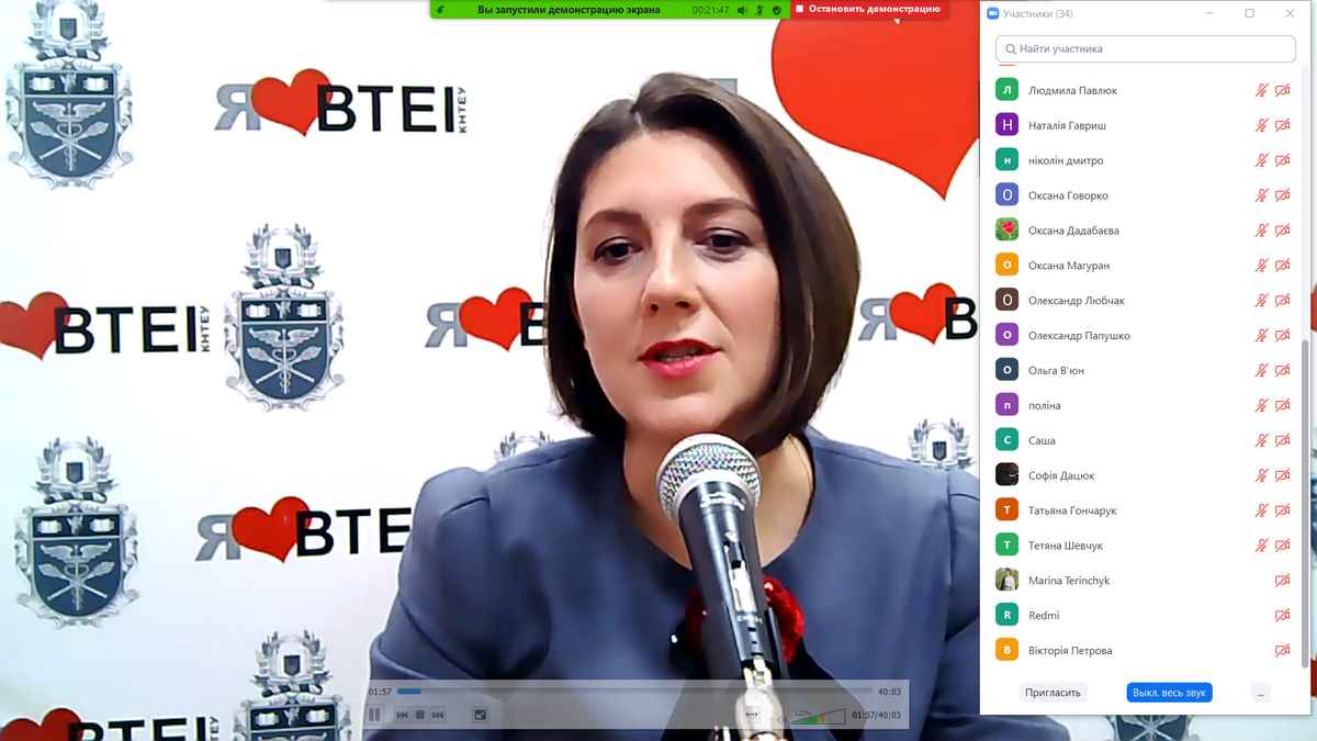Усі присутні мали змогу дізнатися про переваги навчання в інституті, можливості кар’єрного росту випускників, конкурентні переваги вишу на ринку праці, основні моменти вступної кампанії 2021, факультети, спеціальності та освітні програми у ВТЕІ КНТЕУ, наше яскраве студентське життя.