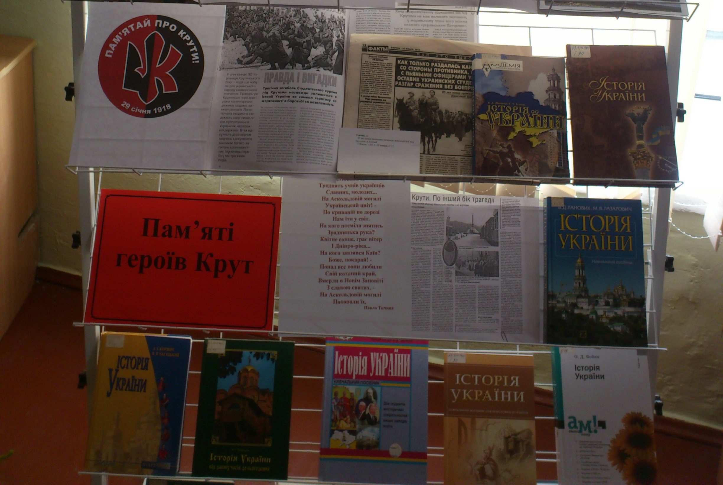 До цієї героїчної події в читальній залі №3 бібліотеки інституту організовано книжково-ілюстровану виставку-пам’ять «Відлуння героїки Крутів».