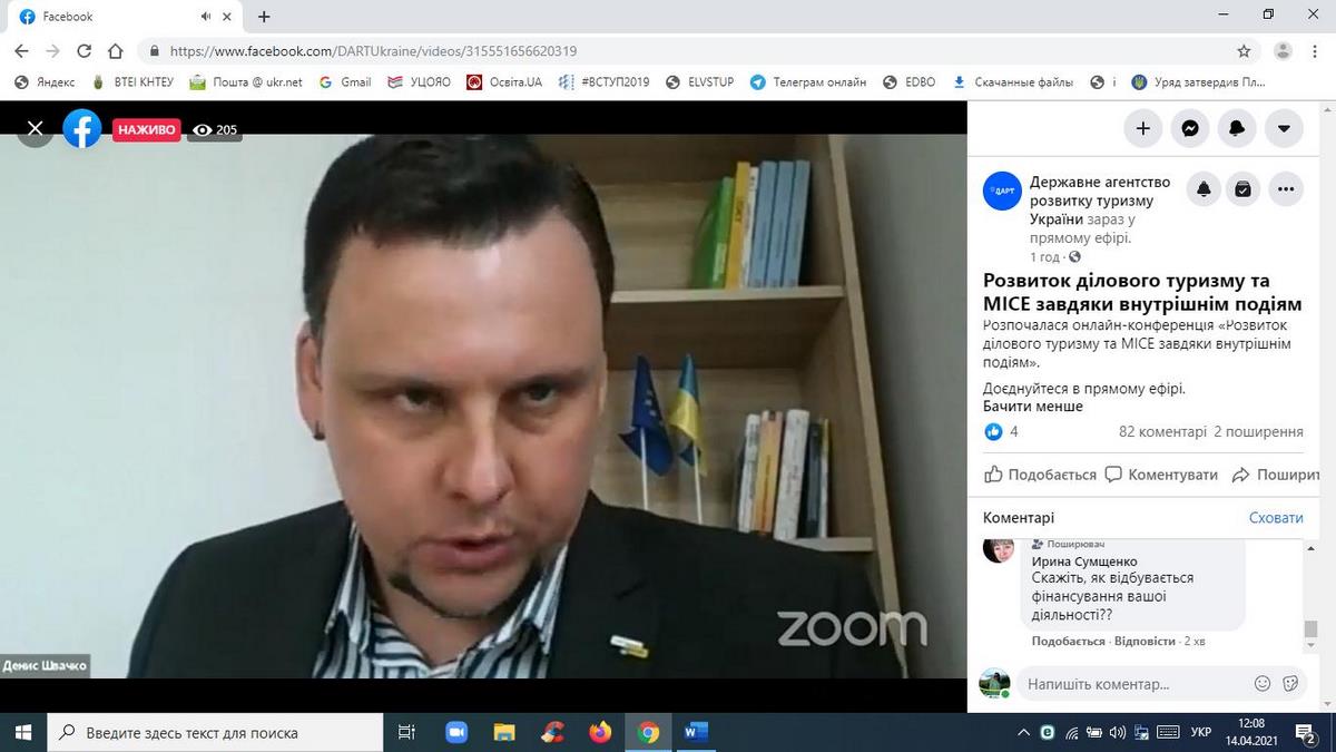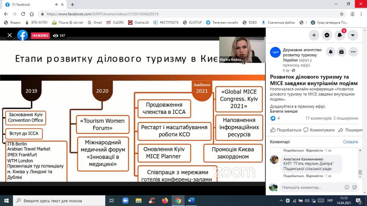 14 квітня 2021 року науково-педагогічні працівники кафедри туризму та готельно-ресторанної справи, здобувачі вищої освіти за спеціальностями «Туризм», «Готельно-ресторанна справа» взяли участь в онлайн-конференції «Розвиток ділового туризму та МІСЕ завдяки внутрішнім подіям», організованій Державним агентством розвитку туризму України у межах реалізації Всеукраїнського проєкту «Tourism ReView».