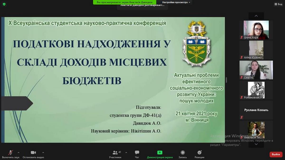 Давидюк Анастасія, доповідь на тему: «Податкові надходження як складова доходів місцевих бюджетів»;