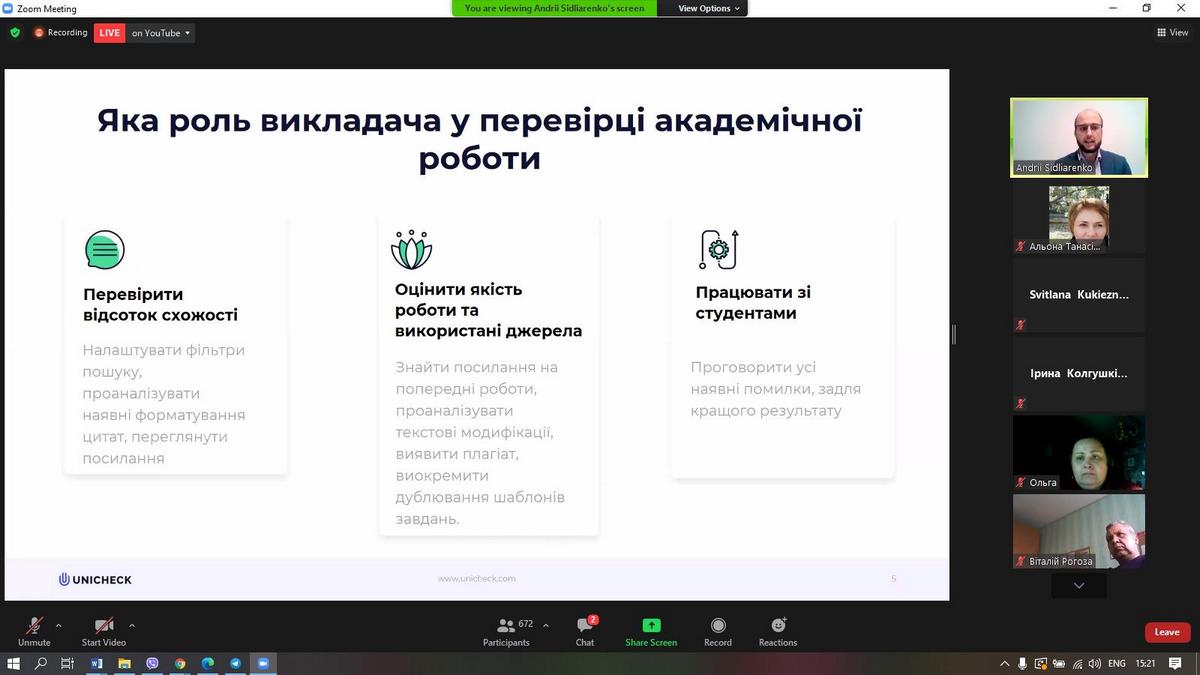 Спікером заходу став експерт з академічної доброчесності, комерційний директор Unicheck Україна Андрій Сідляренко.
