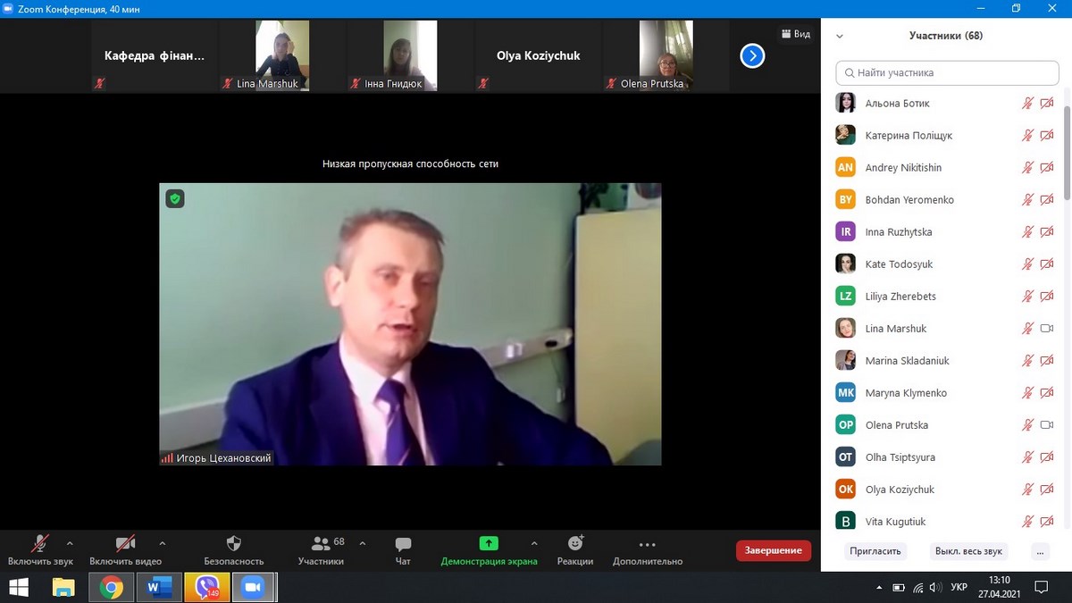 27 квітня 2021 року кафедрою фінансів організовано і проведено семінар за участю Ігоря Цехановського, начальника управління фінансового, інформаційного та господарського забезпечення – головного бухгалтера Департаменту фінансів Вінницької ОДА, на тему: «Бюджетна політика субнаціонального рівня: сучасний стан та перспективи розвитку».