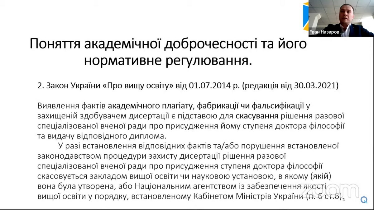 Важливою для учасників Бізнес-школи ВТЕІ КНТЕУ була інформація про зміни в нормативно-правовій базі з академічної доброчесності, про практичне впровадження практик відповідальності за порушення академічної доброчесності, представлення та обговорення проєкту Закону «Про академічну доброчесність».