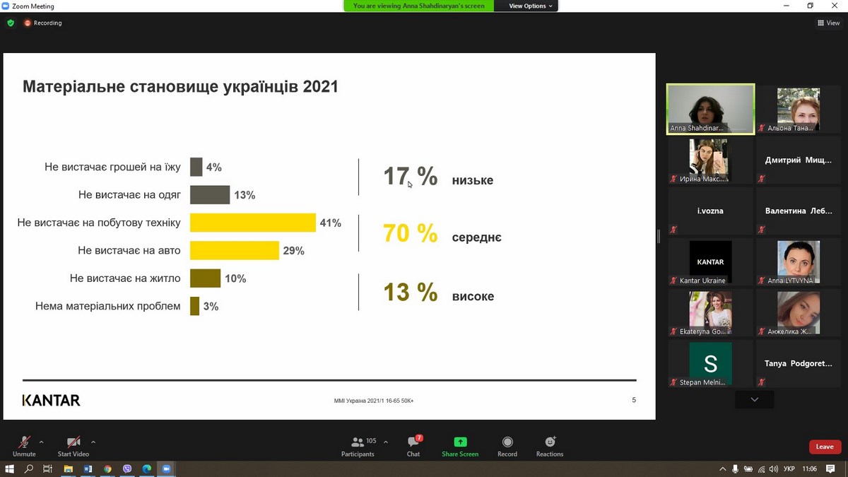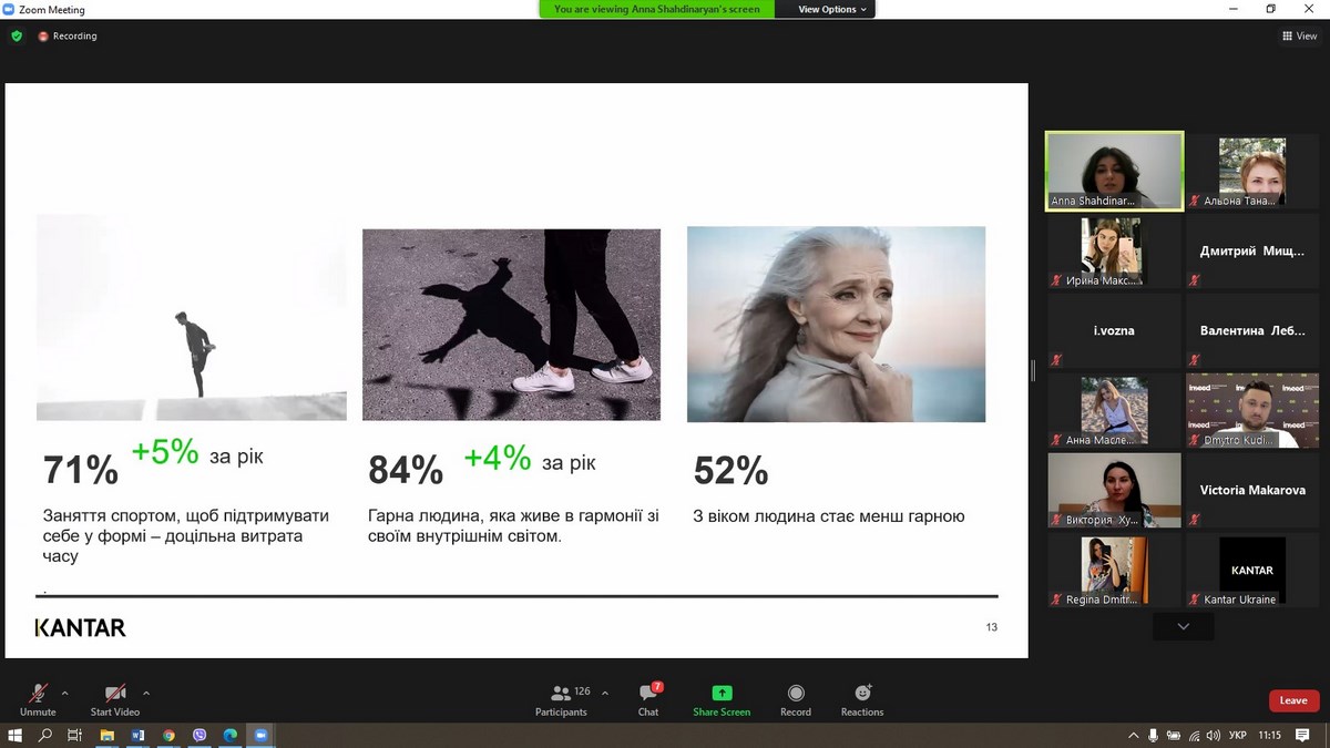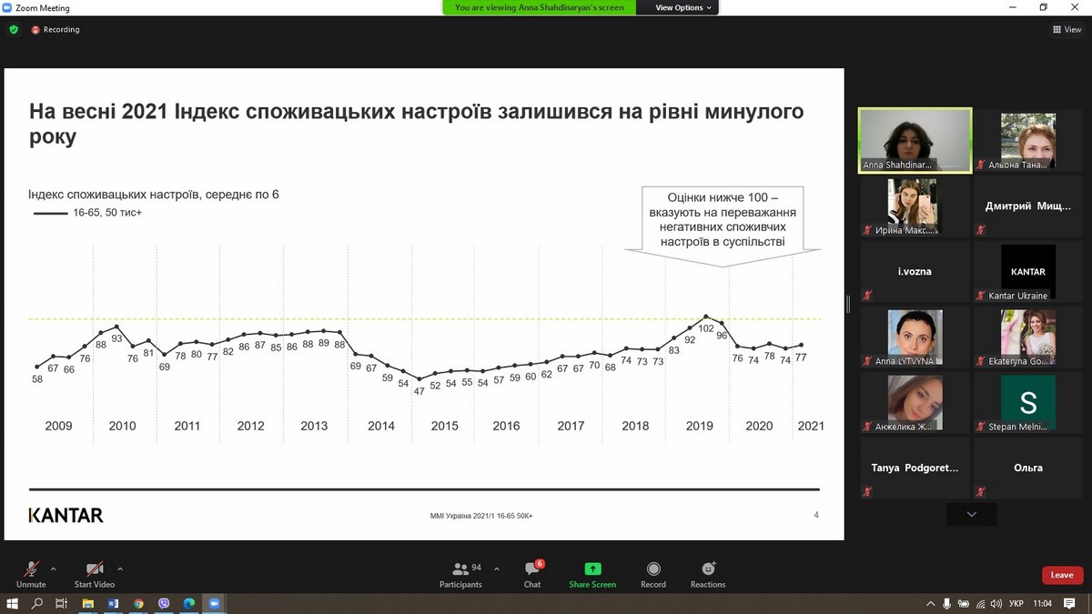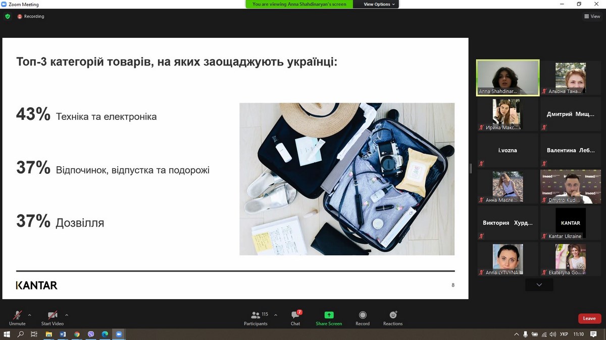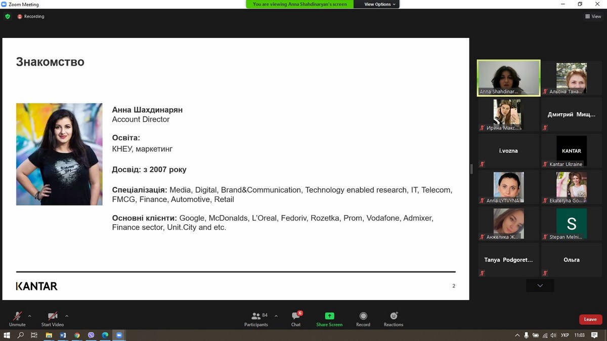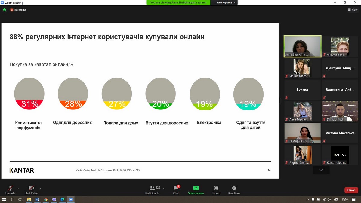 27 травня 2021 року викладачі та здобувачі вищої освіти ВТЕІ КНТЕУ брали участь у вебінарі «Споживацькі настрої українців 2021», який проводила Анна Шахдінарян, Account Director Kantar Ukraine за організації провідної у світі дослідницької компанії – «Kantar Україна».