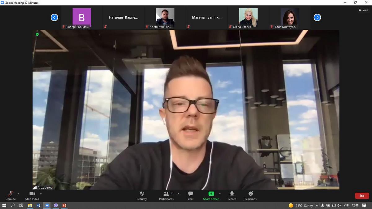 Anze Jereb, відзначив, що саме час змінювати парадигму спеціальності «Маркетинг», оскільки маркетинг це філософія управління, а сучасному бізнесу потрібні вузькосфокусовані професіонали за спеціальностями, які не завжди можна отримати в Україні. Тому, доцільно знайти можливості для вивчення європейського досвіду формування стандартів та взяти його за основу Професійного стандарту «Рекламіст», що створить можливість підприємствам рекламної індустрії наступні 10 років використовувати його у своїй діяльності.