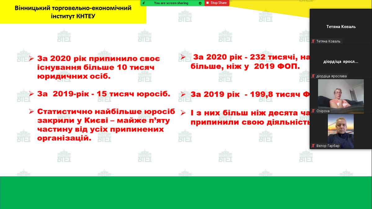 У ВТЕІ КНТЕУ відбулась онлайн-лекція «Особливості організації малого та середнього бізнесу в умовах пандемії COVID-19»