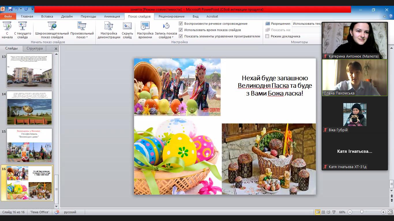 - «Традиції святкування Великодня в Україні» - Кліпінська Анастасія (гр. ХТ-21д);