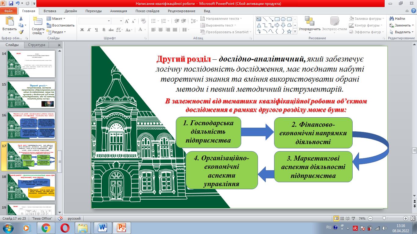 8 квітня 2022 року для здобувачів вищої освіти за спеціальностями 241 «Готельно-ресторанна справа» (освітня програма «Готельно-ресторанна справа») та 242 «Туризм» (освітня програма «Міжнародний туристичний бізнес») освітнього ступеня «магістр», к.е.н., доцентом кафедри туризму та готельно-ресторанної справи Мариною Рябенькою було проведено семінар на тему: «Кваліфікаційна робота як самостійне наукове дослідження: вимоги до виконання та захисту».