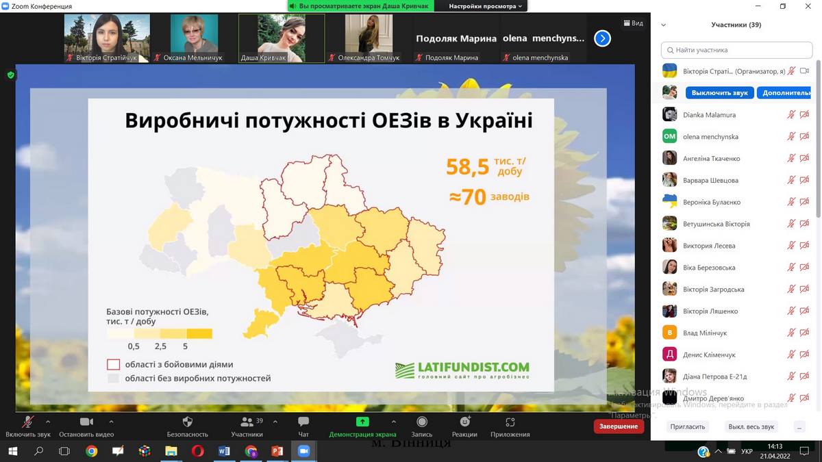 21 квітня 2022 року кафедрою економіки та міжнародних відносин проведено секційне засідання «Глобальні імперативи підприємницького потенціалу компаній на внутрішньому та зовнішньому ринках» в рамках XІ Всеукраїнської студентської науково-практичної конференції «Актуальні проблеми ефективного соціально-економічного розвитку України: пошук молодих». У засіданні взяли участь 40 осіб, серед них здобувачі вищої освіти груп ЕП-31д, ЕП-11дс, МЕВ-21д, МЕВ-41д та інших; науково-педагогічні працівники кафедри економіки та міжнародних відносин.