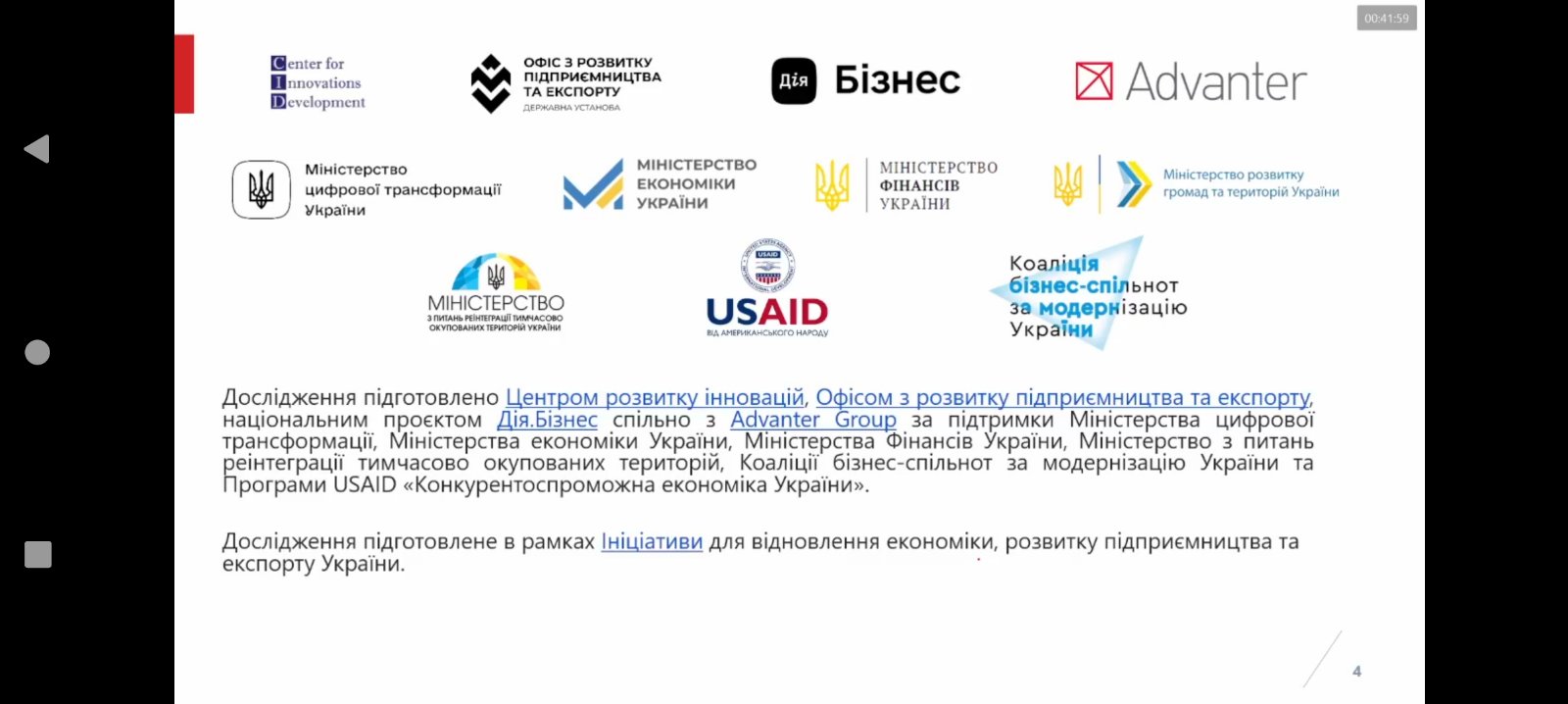 - Центром розвитку інновацій та Advanter Group у межах Ініціативи для відновлення економіки, розвитку підприємництва та експорту України за підтримки Міністерства цифрової трансформації, Міністерства економіки України, Міністерства фінансів України, Міністерства розвитку громад та територій, Міністерство з питань реінтеграції тимчасово окупованих територій.