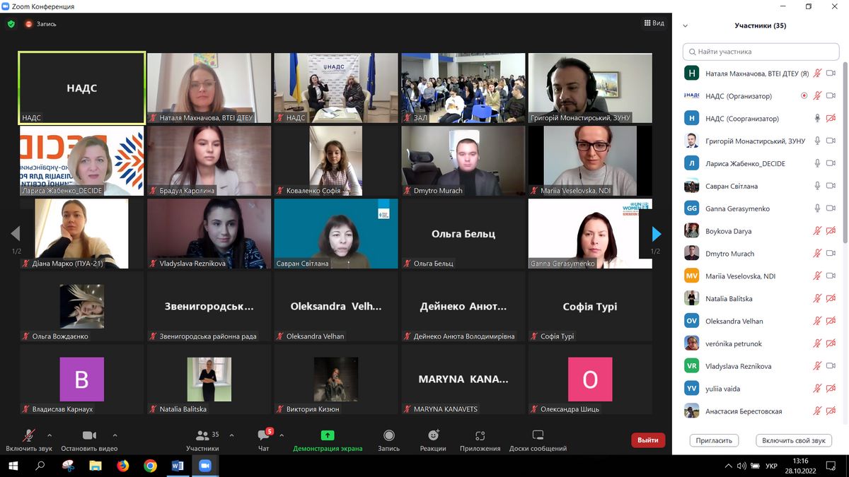 28 жовтня 2022 року на відкритій конференції НАДС було оголошено переможців Всеукраїнського конкурсу творчих робіт серед молоді, який організовано за ініціативи Агентства і Центру адаптації державної служби до стандартів ЄС. Перемогу в номінації «Жіноче лідерство на державній службі» здобула Валерія Кузінська, студентка 4 курсу спеціальності «Публічне управління та адміністрування», науковий керівник – канд. екон. наук, доцент Наталя Махначова.