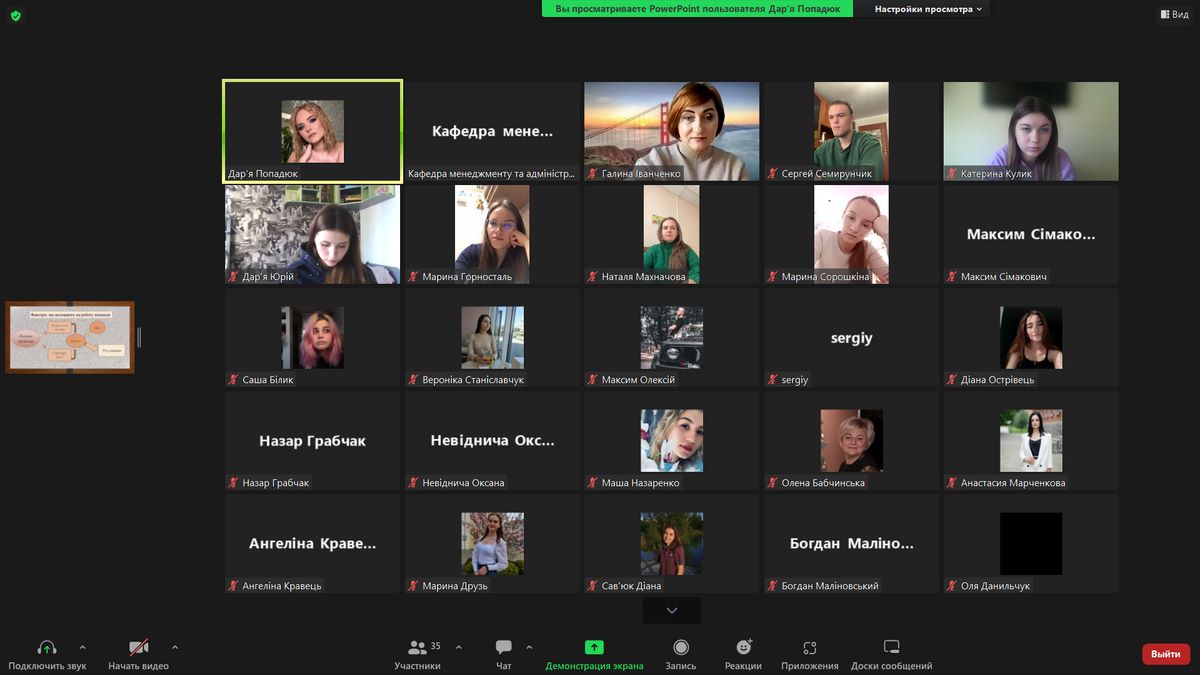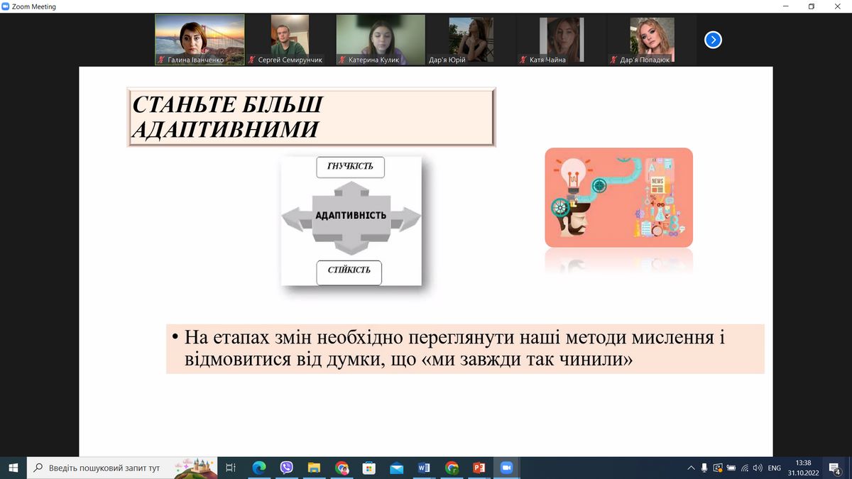 31 жовтня 2022 року викладачами кафедри менеджменту та адміністрування було організовано та проведено мітап «Актуальні проблеми менеджменту в умовах інноваційного розвитку» для здобувачів вищої освіти ступеня «бакалавр» спеціальностей «Менеджмент» і «Публічне управління та адміністрування» та «молодший бакалавр» спеціальності «Менеджмент». Метою заходу було обговорення сучасних тенденцій в сфері управління та пошуку шляхів розвитку України у післявоєнний період.