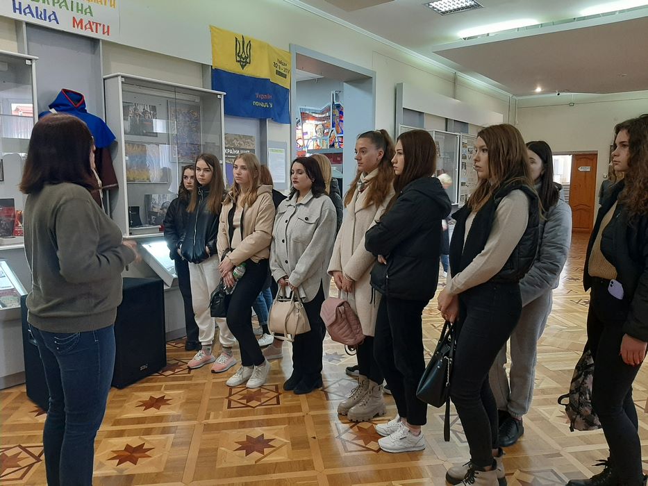3 листопада 2022 року співробітники бібліотеки ВТЕІ ДТЕУ в рамках проведення кураторської години організували для здобувачів вищої освіти спеціальності «Публічне управління та адміністрування» (групи ПУА-11д, куратор - Наталія Корж, доктор економічних наук, професор кафедри менеджменту та адміністрування) екскурсію до Вінницького обласного краєзнавчого музею.