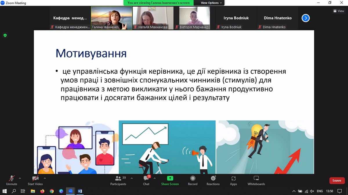 8 листопада 2022 року Галина Іванченко, кандидат економічних наук, доцент, доцент кафедри менеджменту та адміністрування ВТЕІ ДТЕУ, та Костянтин Герасимюк, кандидат наук з державного управління, доцент, доцент кафедри управління та адміністрування КЗВО «Вінницька академія неперервної освіти», сертифікований тренер за програмою «МАТРА» («Належне врядування та доброчесність у публічному секторі»), ексочільник Міжрегіонального управління Національного агентства України з питань державної служби у Вінницькій, Житомирській та Хмельницькій областях (2018-2022 рр.), провели бінарну лекцію на тему «Особливості мотивації персоналу в органах публічної влади» в рамках викладання дисципліни «Стратегічне управління та професійний розвиток в публічних організаціях» для здобувачів ОП «Публічне управління та адміністрування» ступеня вищої освіти «магістр».