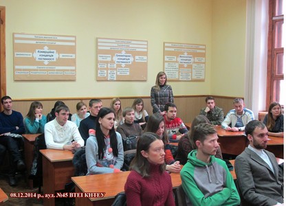 8 грудня 2014 року в приміщенні першого корпусу ВТЕІ КНТЕУ в рамках «Всеукраїнського тижня права» для груп студентів інституту була проведена зустріч з головою Правління «Подільського центру прав людини» Бардиним Михайлом Богдановичем. Тема доповіді: «Захист прав та інтересів громадян в сучасних умовах України». Після змістовної доповіді відбулася жвава дискусія, в якій студентство активно обговорювало низький рівень правової захищеності громадян в Україні, неефективність та заангажованість роботи судів та правоохоронних органів, а також першочергові шляхи проведення реформування системи безпеки громадян України. Доповідач наводив приклади захисту прав людини в конкретних життєвих ситуаціях.