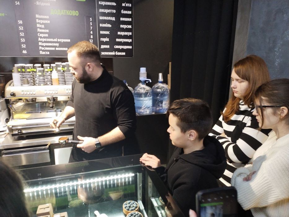 Приємна дружня атмосфера панувала під час майстер-класу, учасники хвилююче проходили кожен технологічний етап з приготування кави, а після завершення приготування початківці бариста демонстрували наставнику свої результати роботи та отримали експертну думку досвідченого фахівця. Щиро дякуємо шановному Назару Лугачу за проведений майстер-клас в кав’ярні «BIGMAN COFFEE», за гостинність працівникам кав’ярні, за поради та настанови в приготуванні кави та кавових напоїв, обмін досвідом та ознайомлення з практичними кейсами.