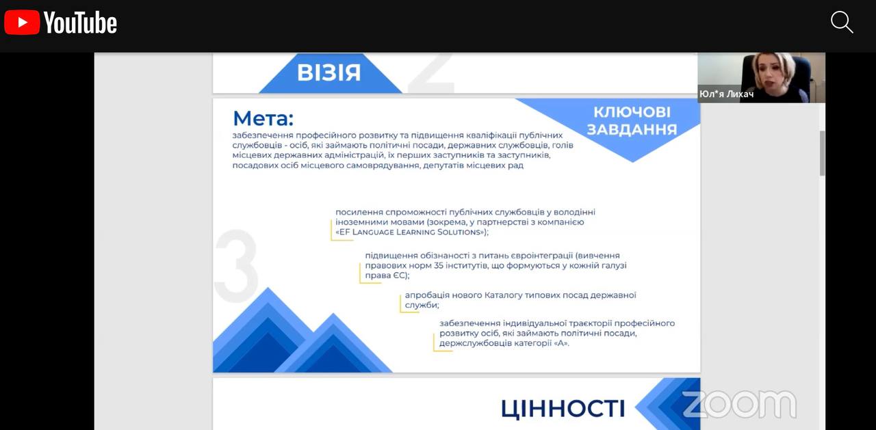 ⁃ Наталія Алюшина, голова Національного агентства України з питань державної служби, представила пріоритети формування та професійного розвитку публічних службовців на сучасному етапі;