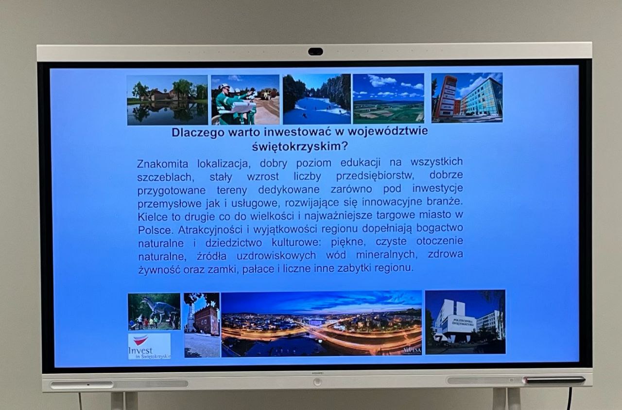 Розпочалась зустріч з відвідування Департаменту інвестицій та розвитку Маршалківської управи Свентокшиського воєводства, під час якої членам делегації презентували основні напрямки діяльності установи, однією з яких, є об’єднання підприємств з науковим сектором з метою підготовки кваліфікованих кадрів. Крім того, було ознайомлено зі стратегією розвитку воєводства до 2027 року, механізмами підтримки підприємців та прикладами залучення коштів ЄС.