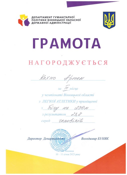 Участь у чемпіонаті Вінницької області з легкої атлетики у приміщенні