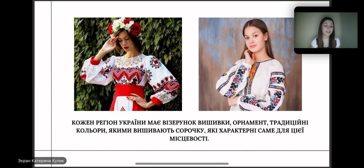 Серед актуальних доповідей було заслухано доповідь Катерини Кулик, студентки групи ПУА-21д на тему «Українська вишиванка – справжній генетичний код нації», науковий керівник - канд. екон. наук, доцент Наталя Махначова.