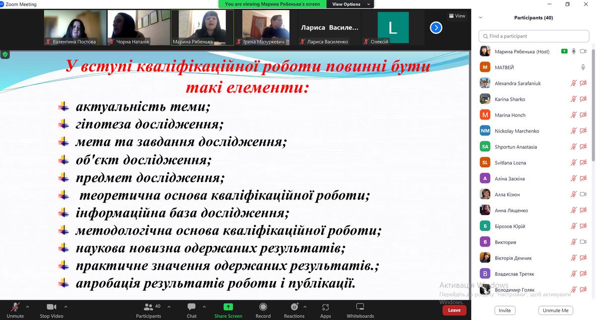 Проведений семінар був корисним та пізнавальним для здобувачів вищої освіти, оскільки дозволив зорієнтуватися в існуючих вимогах щодо написання кваліфікаційної роботи та отримати відповіді на наявні щодо цього запитання.