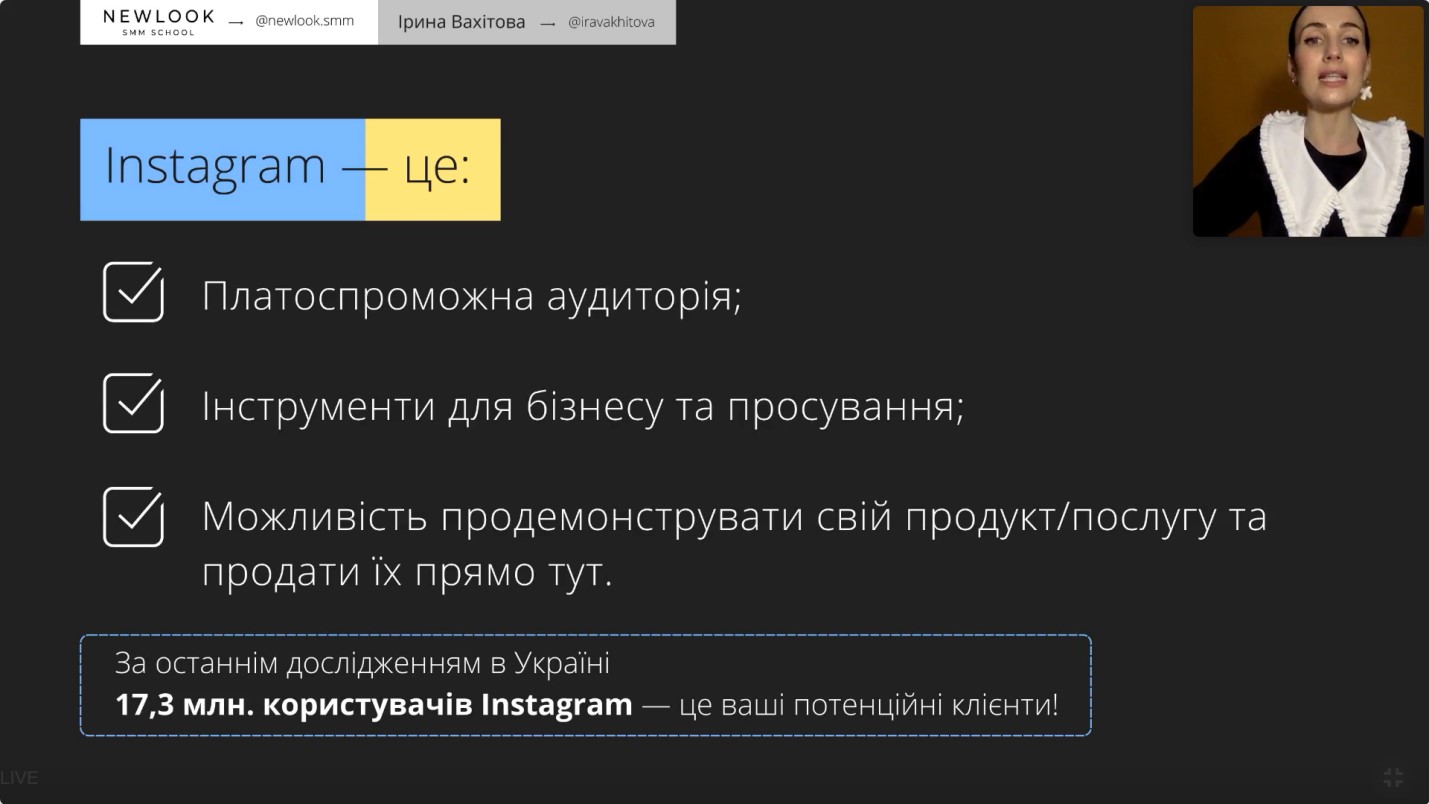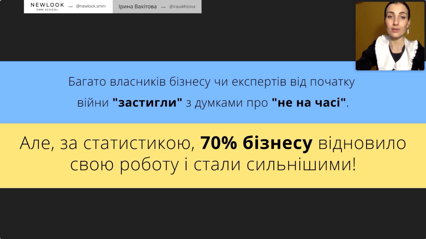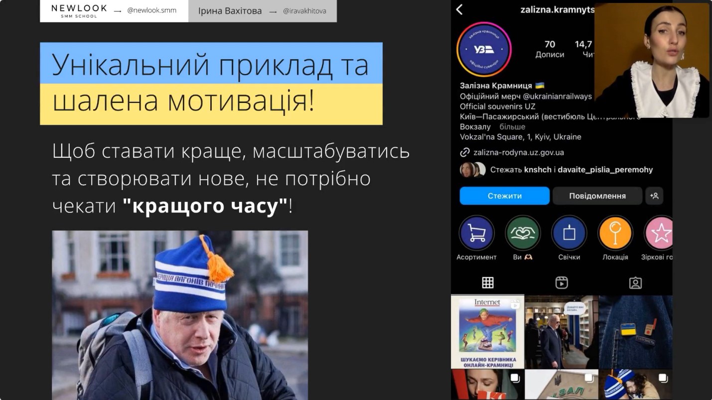 Спікерка майстер-класу – Ірина Вахітова, блогерка, яка створює контент для відомих брендів, співвласниця школи для SMMщиків розповіла про розвиток особистого бренду як потужного інструменту продажів та залучення клієнтів; тренди візуалу 2023 року; особливості створення публікацій, які виведуть акаунт в топ рекомендації та секрети ефективних технік просування (Reels, хештеги, колаборації).