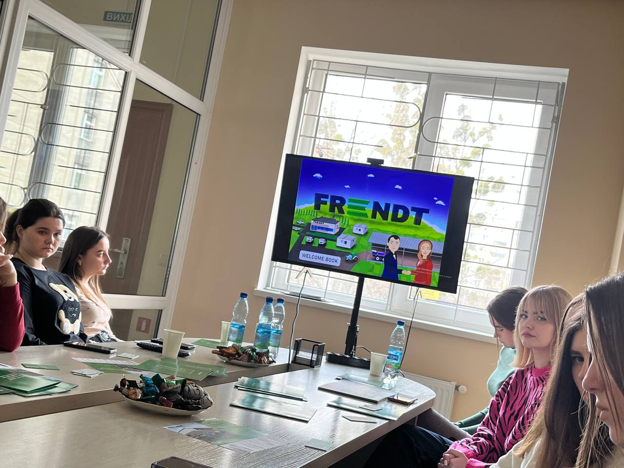 10 березня 2023 року студенти спеціальності «Менеджмент» відвідали офіс інноваційної компанії, діяльність якої спрямована на розробку цифрових технологій та базується на інноваційному підході в агробізнесі – ТОВ «FRENDT». Власник компанії Віталій Шуберанський розповів про основні напрямки, специфіку роботи, інноваційні підходи в агросфері, а також зауважив на правильно побудованому менеджменті для успішного керування підприємством. Студенти отримали кейси, які вони мають вирішити в рамках вивчення курсу «Менеджмент».